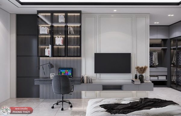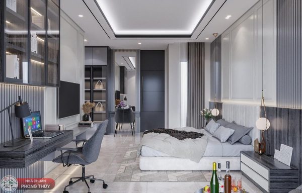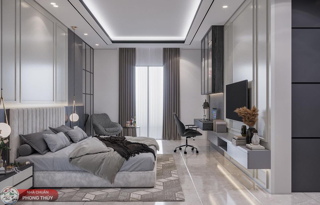 Trong thiết kế phòng ngủ phong cách Bắc Âu cho anh Quang, Phong Thủy Chấn Tam đã đặc biệt chú ý đến phong thủy: giường ngủ đặt ở vị trí trung tâm, lưng giường vững chắc, tránh xung trực với cửa; màu sắc trung tính hợp mệnh gia chủ; ánh sáng tự nhiên và nhân tạo được bố trí hài hòa. Điều này không chỉ giúp không gian thêm cân bằng mà còn nuôi dưỡng năng lượng tích cực cho gia đình.